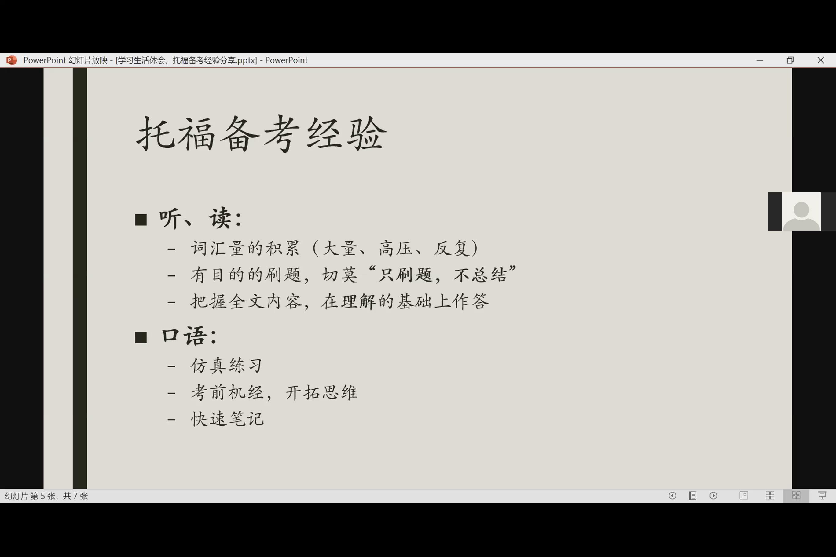 最后,推介会邀请到课程班美国马里兰大学项目在读生高驰(本科:2016级厦大经济学院金融学国际化试点班)为大家分享了在WISE近一年来的学习生活体会。他认为课程班是同学们重新选择、重新开始的机会,课程设置专业、内容丰富,能够为同学们出国“铺好路”。对于托福取得了107分的高分,高驰也在线分享了他的托福备考经验。